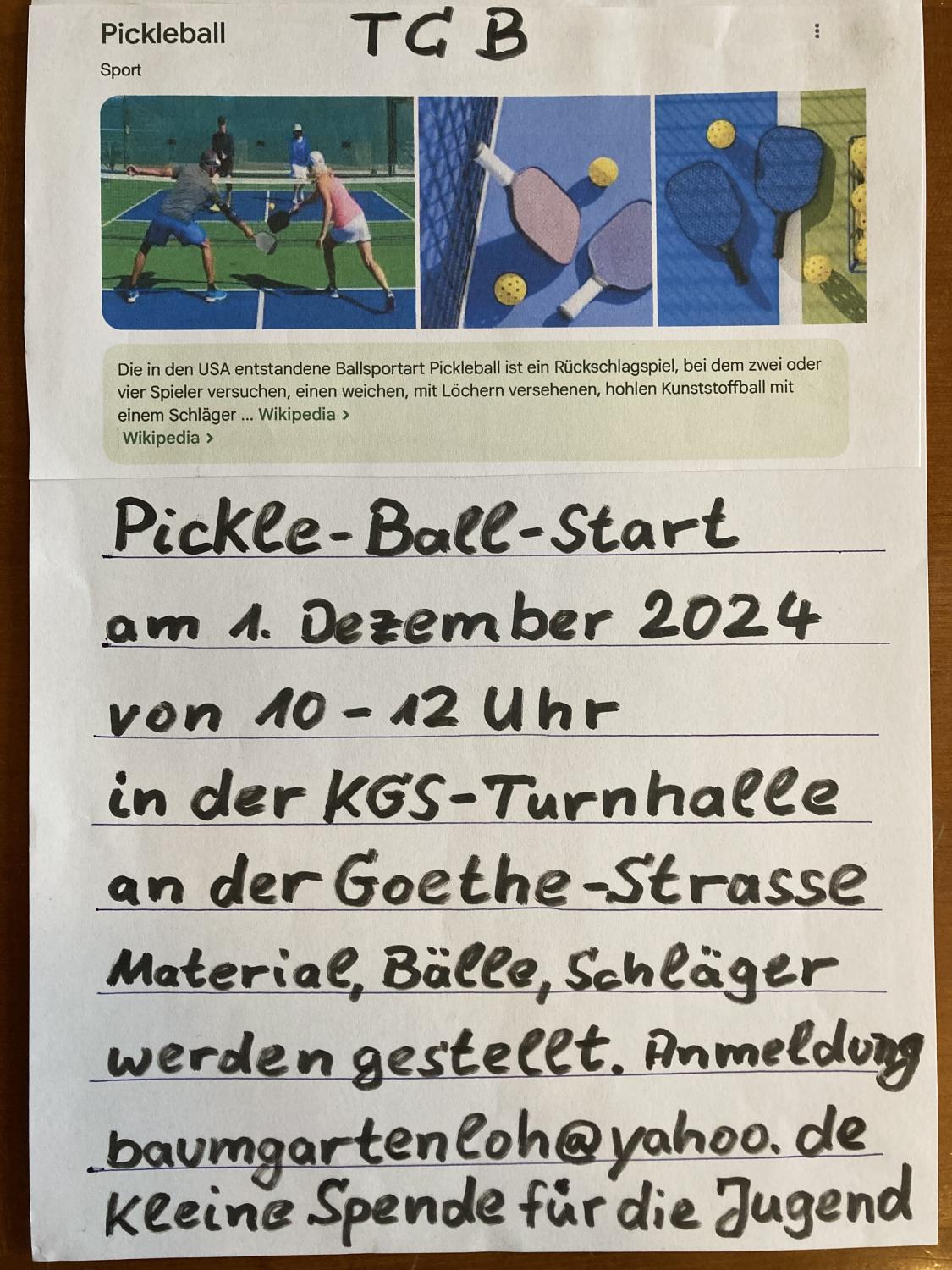 ****# Pickle-Ball am 1. Dezember